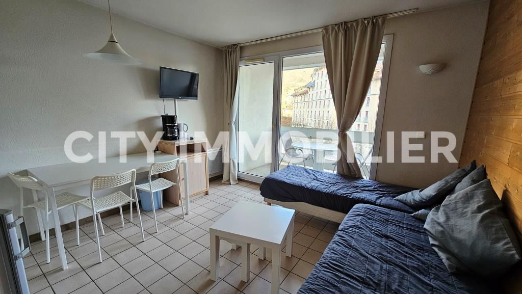 T2 meublé avec terrasse situé 13 Avenue des Bains à Allevard - Au 4ème étage avec ascenseur - Comprenant cuisine équipée ouverte sur séjour - 1 chambre - salle de bains avec baignoire et wc indépendant - Laverie dans l'immeuble - Disponible le 30.01.26 - Loyer 468.35 € + charges 57 € (eau froide comprise) - Dépôt de garantie 468.35 € - Frais d'agence 317.79 € dont état des lieux 86.67 €.