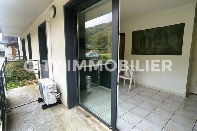 Grand appartement de type 2 placé dans une résidence tranquille et bénéficiant de jolis espaces verts. Cuisine totalement aménagée s'ouvrant sur le salon/salle à manger et donnant accès à un balcon. Chambre équipée d'un placard à portes coulissantes, une spacieuse salle de bain avec balnéothérapie et un toilette indépendant. Grande buanderie. Climatisation réversible, poêle à granulés et chauffe-eau solaire. L'eau froide est comprise dans les charges. Ce bien dispose d'une place de parking privée abritée. Un box est aussi inclus dans la vente.